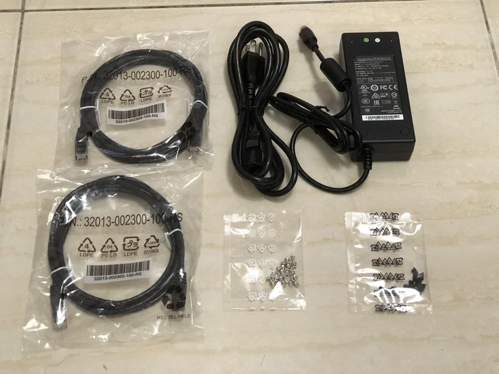 ▼配件一覽,有電源線,CAT5e網路線和硬碟固定螺絲