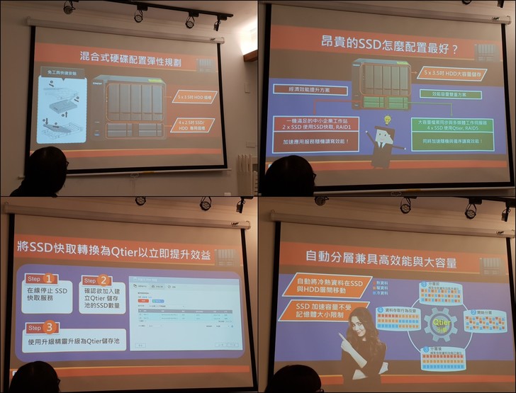 ▼支援最多5顆3.5吋HDD和4顆2.5吋SSD,透過Qtier將兩者優點整合,藉由自動分層做冷熱處理,加速寫入讀取速度