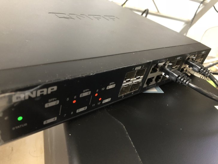 ▼個人配置比較簡單,是從中華電信小烏龜那邊直接拉了一條接在QSW-1208-8C上,再分接出去電腦和TS-932X,因為傳輸線只是單純的CAT 5e,所以狀態顯示燈上為橘黃燈