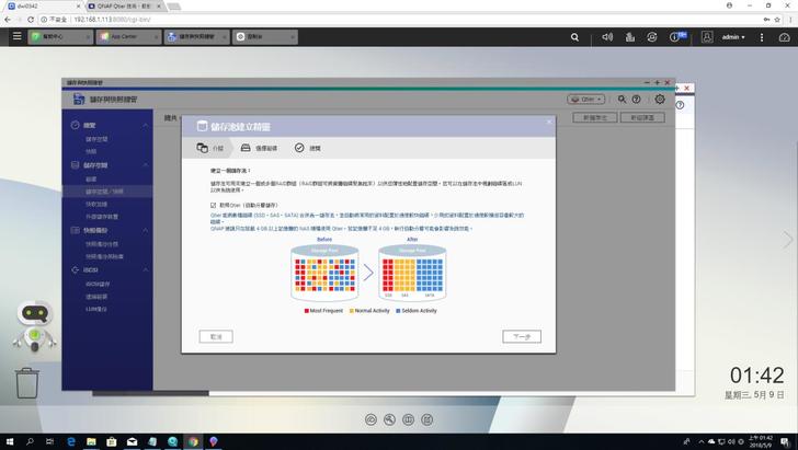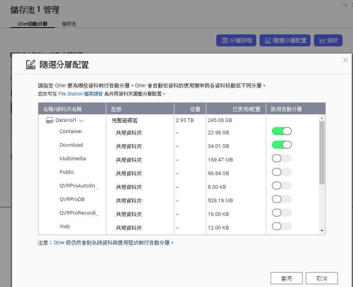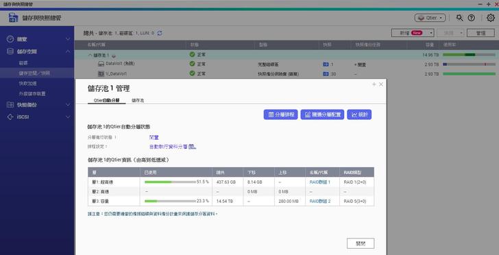 ▼Qtier管理分頁間可以看到整個儲存池的運作狀態,SSD做為最高速傳輸使用,也就是熱處理的部分,而大容量的HDD則是做冷資料處理