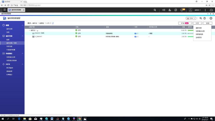 ▼快照功能只能在硬碟型態是完整磁碟區時才能使用