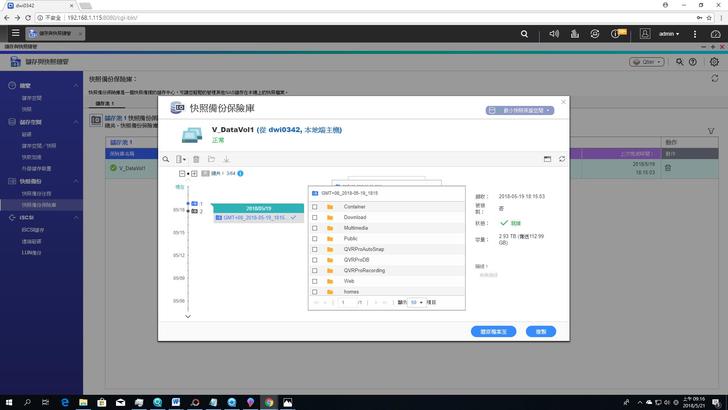快照功能是記錄任一時間點的系統狀態與資料,一旦資料出現毀損,便可利用該功能回復任一時間資料原本的狀態