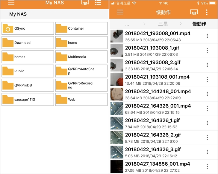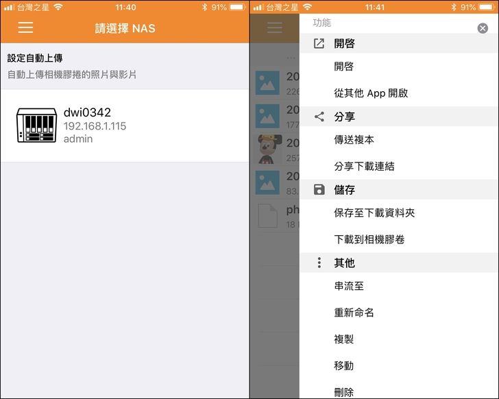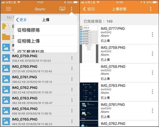 ▼可以設定讓手機自動上傳照片備份,也可以播放或下載Nas上的所有資料
