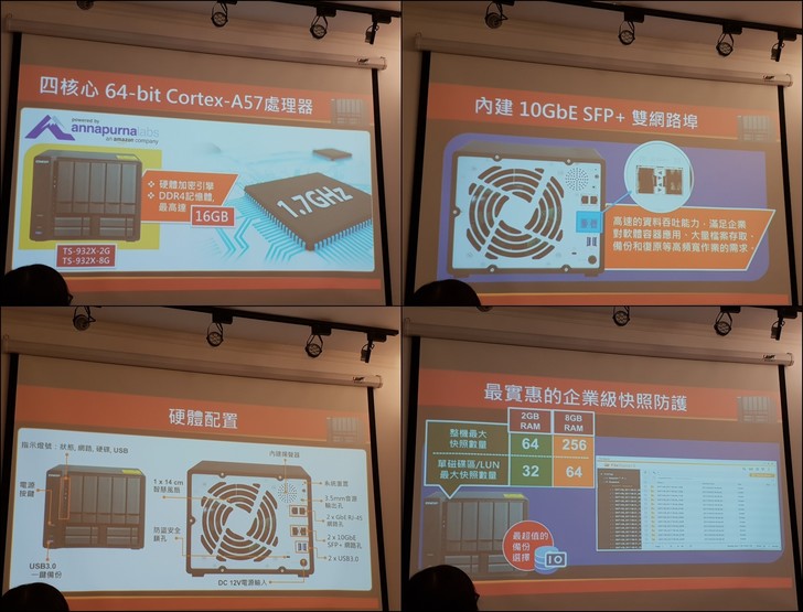 ▼內建4核心1.7GHz處理器,雙10Gbe SFP+ 網路埠,後方有豐富的連接埠,8GB RAM可以備份更多快照