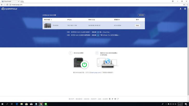▼開機後,我是透過電腦來操作NAS的設定,只要都在同一個IP位址TS-932X就會自動跳出來,按下去初始化以後開始跑步驟