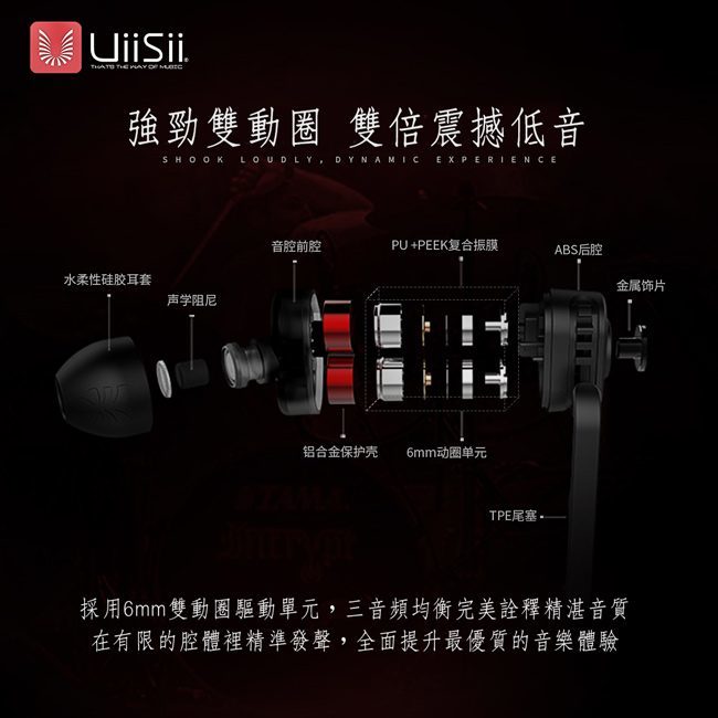 UiiSii BA-T6 震撼低音雙動圈HiFi入耳式線控耳機