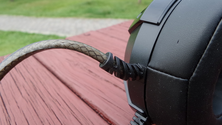 【▼】線材與耳機本體是作固定式的連接,線材是從左耳罩下緣作連接,延伸處有防拉扯的設計。