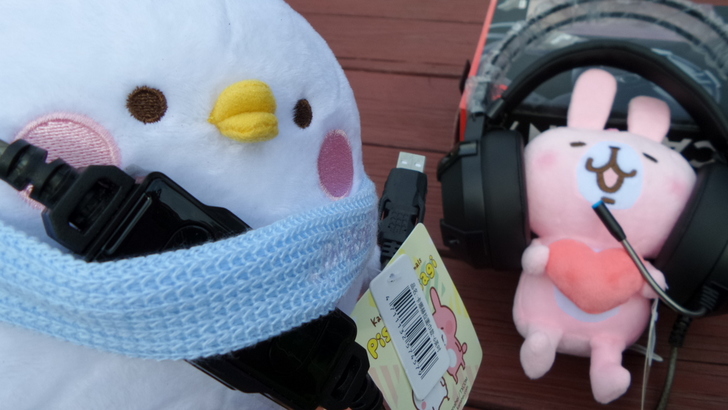 【▼】P助:接好USB接頭後,才能說話與聽到好聲音啦~ 粉紅兔兔:我要用HG11來玩吃雞遊戲...XDDD