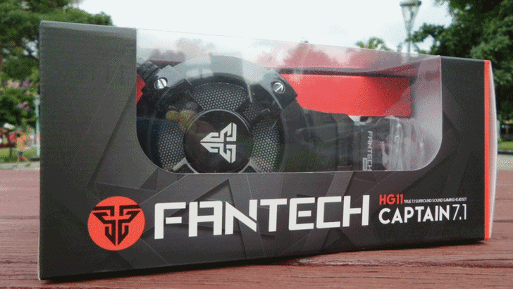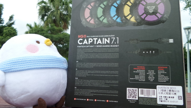 【▼】包裝彩盒相當大器,左邊大大的的 Fantech Logo配上透明的塑膠片,可清楚看見電競耳機本體,而右側為型號 HG11,電競耳機作到 CAPTAIN 7.1聲道,真的要逼死誰啊~