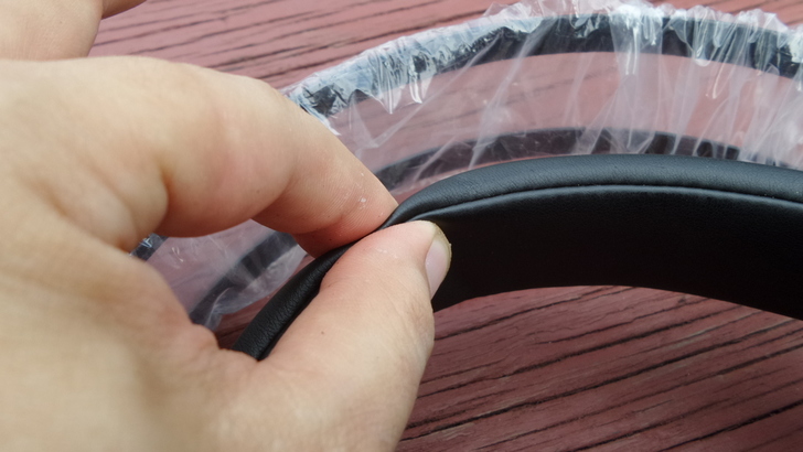 【▼】皮革頭帶內裡與外表的材質有些許差異,外表材質比較偏耳罩材質,但又比耳罩材質略硬一些,內裡則是相對柔軟,整體厚度比耳罩小,約只有0.5cm厚。