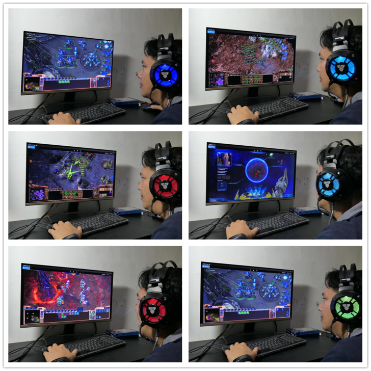 【▼】星海爭霸2也是很經典的即時戰略遊戲,也是電競比賽常指定的遊戲,小編比較偏愛使用神族,不過偶爾也會玩玩人類與異形,用HG11來體驗,小編從神族感受到神秘的重金屬聲,人族則是偏美國大兵的搖滾風,最後異形則是能體驗各種蟲蟲的噁心感,例如雷獸發出吼聲、異化蟲會發出嘶嘶的叫聲,音效中具備了豐富的個性與情感?簡直就是媲美電影異形嘛~體驗過程中,尚未走到的迷霧區隨著接近而清晰,對於敵人的追擊也能清楚定位戰鬥位置來反擊,小編印象最深刻的是各單位的作戰音效,因為它透過聲音來描述十分的逼真,洞穴的風切聲與水中的悶覺感都十分立體,還真以為來到了戰場,雙方近戰時的槍砲、口水聲,很明顯聽得出來渾厚寫實,死傷時發出的哀嚎聲,似乎還有點殘忍呢!