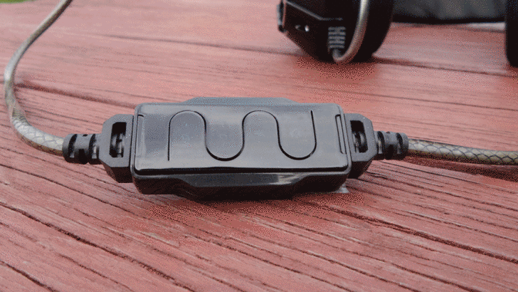 【▼】線控盒本身有四個實體按鍵,由上而下分別是增大音量、減小音量、麥克風(開/關)與RGB效果(開/關)。按鍵外觀採弧度凹槽作按壓的緩衝,一方面也讓按壓更為精準。