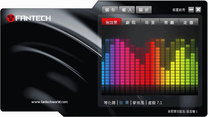 【▼】在聲道效果的選項有劇院、浴室、客廳與走廊,劇院重低音效果驚人,浴室聽起有種像是在乾濕分離中淋水歌唱的Fu,客廳則比較偏中低音,但沒劇院感下的那麼重,而走廊的回音效果好懸,聽樂器聲很棒,但人聲會發散掉就比較不適合。