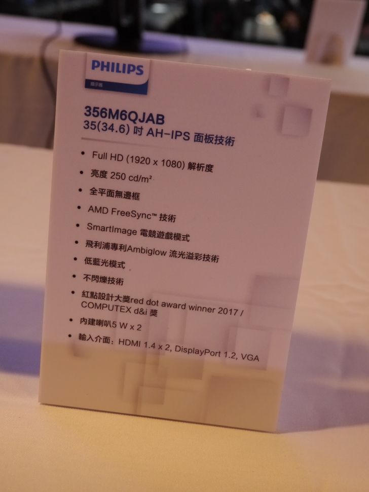 發表會內也是有展示飛利浦的產品首先吸引我的就是這個曲線廣視角的螢幕,雖然小妹我不玩電竸,但看到這個螢幕就可以想像,若用這個玩電玩,一定可以讓電玩的畫面更加壯觀。