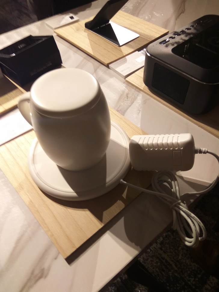 ▲具有恆温55度C的無線充電馬克杯組,除了可保温馬克杯外,亦可當無線充電盤使用,一舉二得。