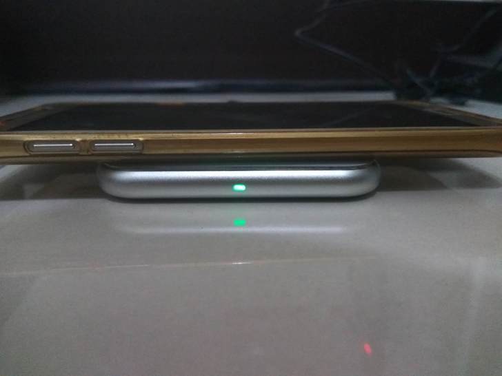 ▲即然叫作無線充電,其實是可以不用緊貼著充電盤的,只要在1CM內,皆有充電效果。