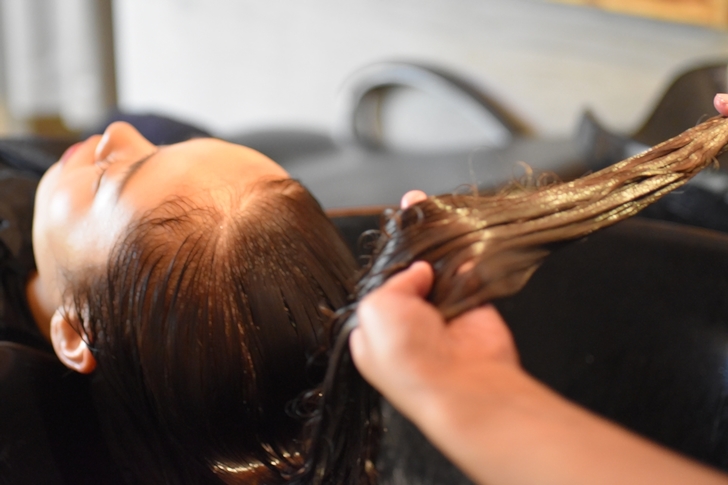 聽美髮設計師說第一劑是先清除毛鱗片縫隙裡的殘留物。