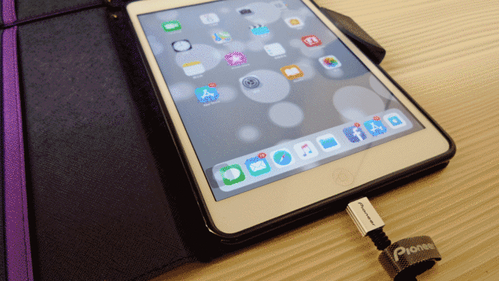 【▼】Pioneer APS-iLA2-S100充電傳輸線一端接豆腐頭,一端接iPad或iPhone等相容裝置。