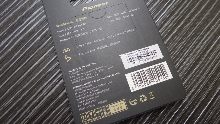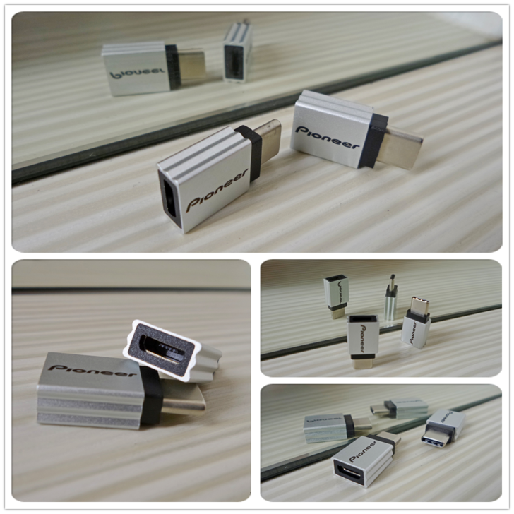 【▼】Type-C to microUSB 轉接頭一組兩個,正反兩面都印有Pioneer的英文字樣,表面亦為金屬設計散熱佳。