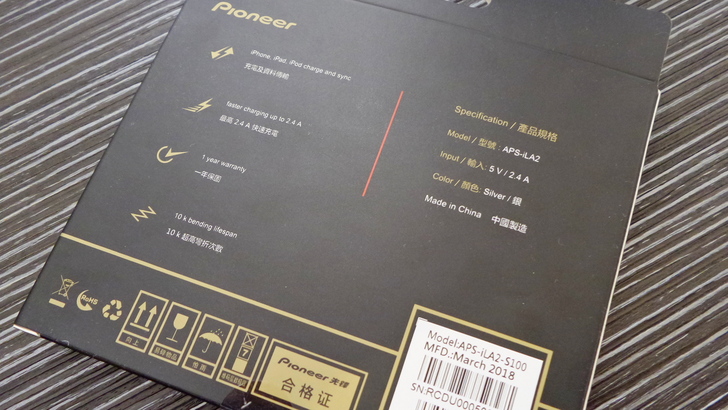 【▼】Pioneer APS-iLA2-S100充電傳輸線基本上從iPod、iPhone 到 iPad 都適用,雖然包裝上沒寫到最新的 iPhoneX,相信也沒問題的。