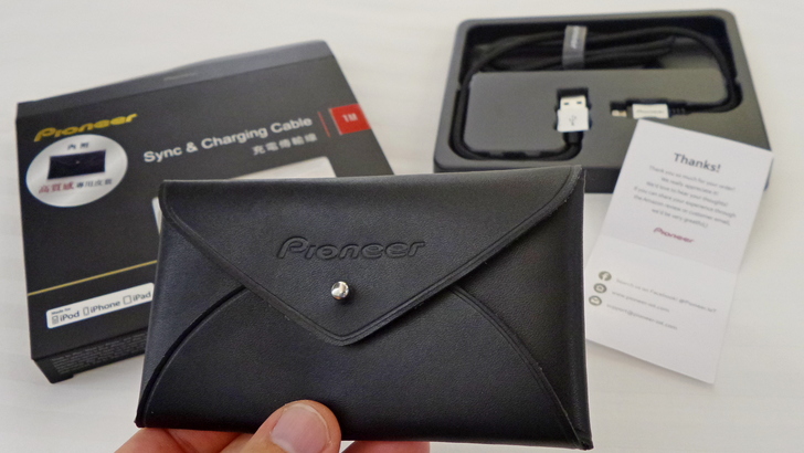 【▼】包裝內容物,除了線材本體之外,還多了張謝卡與精緻皮套可作收納,精緻皮套上印有Pioneer,質感相當不錯。