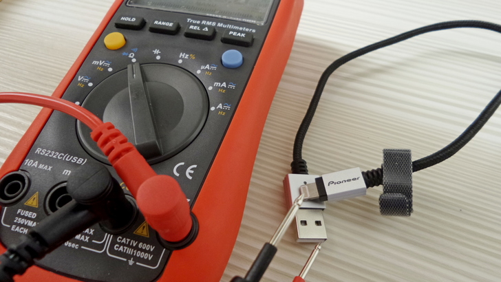 【▼】由於Lightning可以正反兩插,金手指有8Pin,正反兩面都有Vusb,小編先量量三條線的阻抗,原廠103cm/0.21ohm、Remac 101.5cm/0.15ohm、Pioneer 100cm/0.1ohm,以USB 5V來說,V=IR,阻抗大小會影響電流量。
