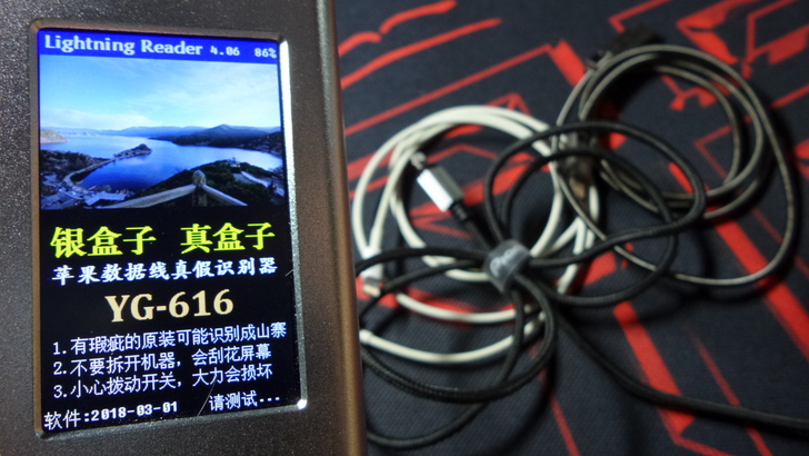 【▼】由電流偵測器檢測可以知道Pioneer APS-iLA2-S100充電傳輸線吃的瓦數高人一等,和其他兩條線相比是不同層次的產品阿~接著使用蘋果線材識別器看看三種線材是否有通過MFI認證。
