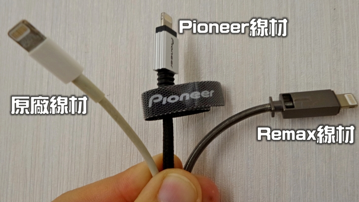 【▼】小編拿家中有的線材(蘋果原廠與Remax)與這次測的Pioneer作比較。