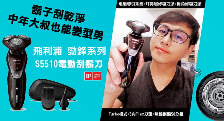 這次試用「飛利浦 S5510 勁鋒系列三刀頭電鬍刀」,使用3刀頭設計真的提升了刮鬍效率,使用上更快更好用,鬍子也刮得更乾淨。