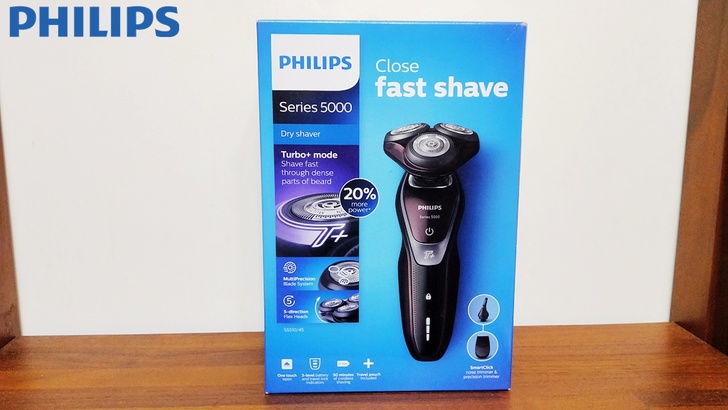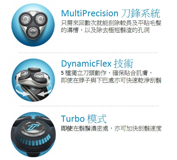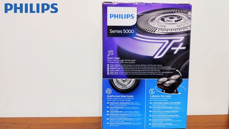 ▲這次試用的是「PHILIPS飛利浦 S5510 勁鋒系列三刀頭電鬍刀」,從外盒的照片可以看到S5510電鬍刀主打3刀頭設計,而且更增強20%括弧力道的Turbo+ 模式,啟動此模式可以讓刮鬍刀的轉速更快,加強了刮鬍的效能與速度。