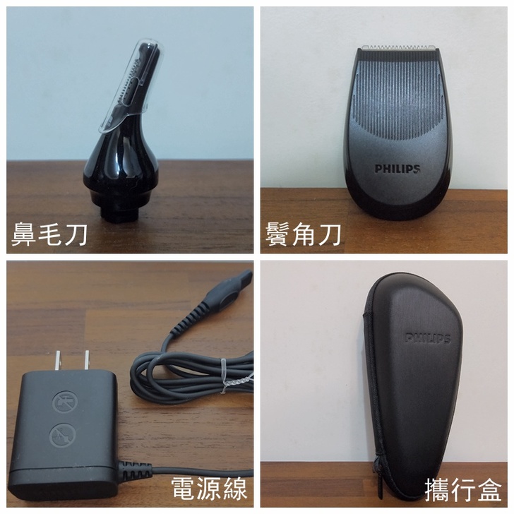 ◎ 附件:主機(含刀頭組)、充電器、收納袋、刀頭保護蓋、清潔刷、鼻毛刀、鬢角刀、說明書、保固書