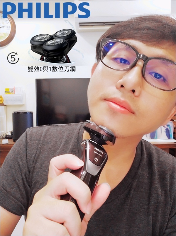 ▲使用S5510電鬍刀乾刮鬍子,沒有任何不適感,接觸皮膚的感覺很滑順,應該與雙效0與1數位刀網系統的刀網設計有關,只要輕輕的滑動,就可以俐落刮除鬍渣。