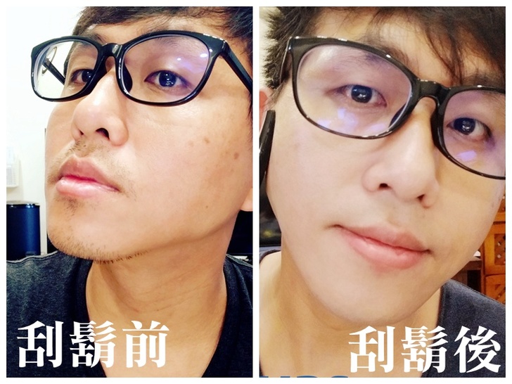 ▲刮鬍前後的比較。鬍子都被刮除殆盡,刮得順暢到底!刮完鬍子後,人顯得神清氣爽,年輕了許多喔!