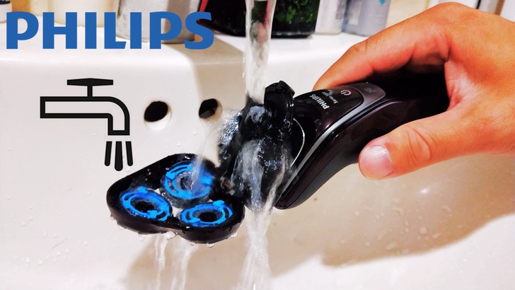 ▲S5510電鬍刀刮鬍刀可於水龍頭下直接沖洗清潔,清潔保養真的很方便。(懶人好物)