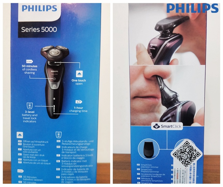 ▲包裝外盒後面有S5510電鬍刀獨特功能介紹,如: