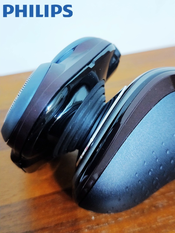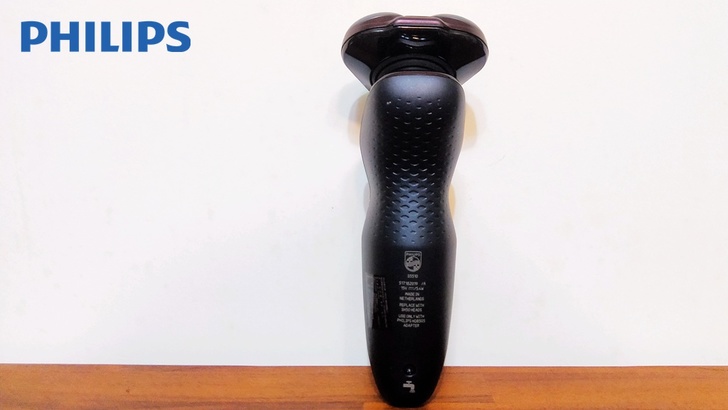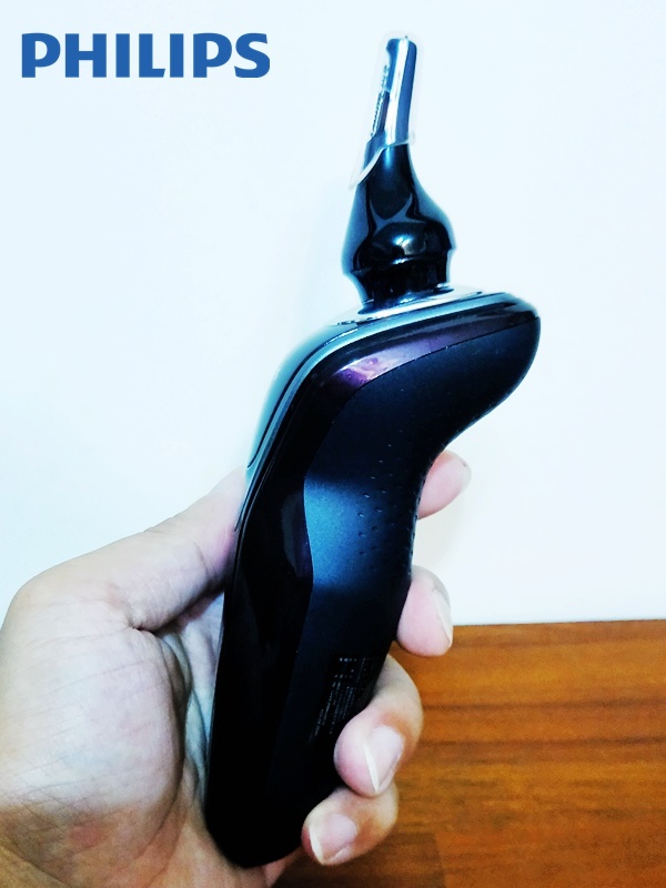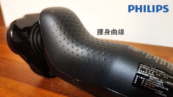 ▲S5510電鬍刀背面有「腰身曲線」的人體工學設計,使用的握持感很舒適,也增添了操控性;後方機身的「菱形矩陣」紋路,是為了要增加摩擦力,握持時更為穩定。
