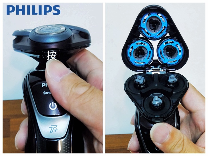 ▲S5510電鬍刀的刀頭部分可以開啟,刀網跟刀片都可以拆下清洗。