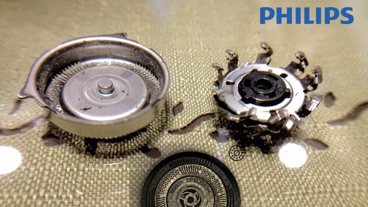 ▲S5510電鬍刀拆下刀頭清理,可以看到刮下來的鬍子都集中在這裡。