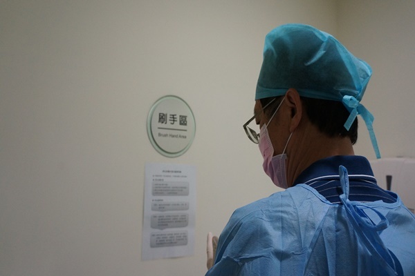 自動門旁有一張漂亮柔軟白沙發,護士則請我在此坐下更換室內拖鞋,