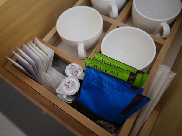 當然在抽屜裡也準備了CATAMONA卡塔摩納濾掛咖啡跟茶包,