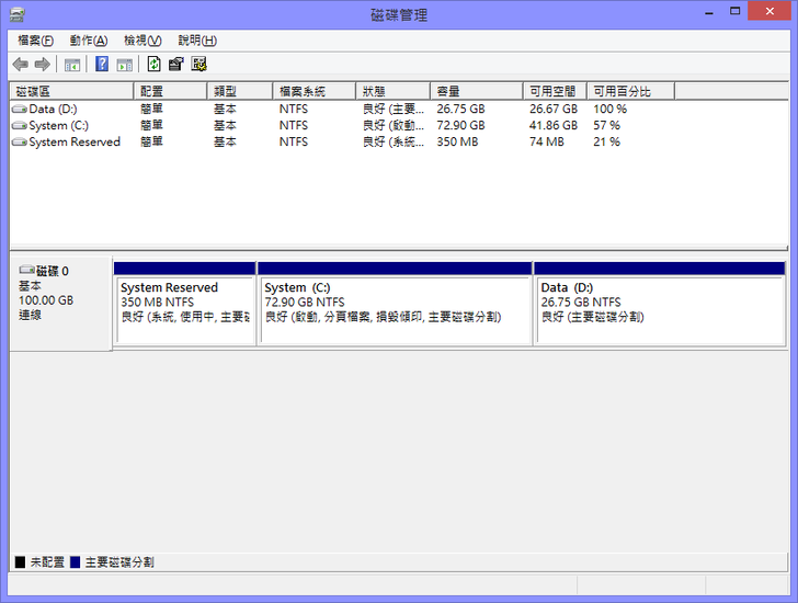 打開磁碟管理,可見Windows 已經完全把這個 iSCSI 磁碟當作一個真正的磁碟機了。