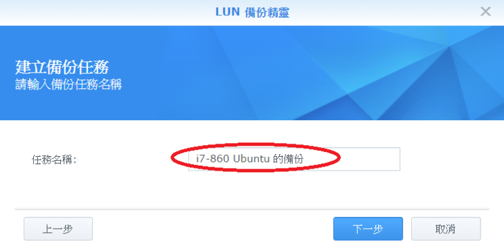 為備份任務取個名字,這裡打個容易記的名字就好……