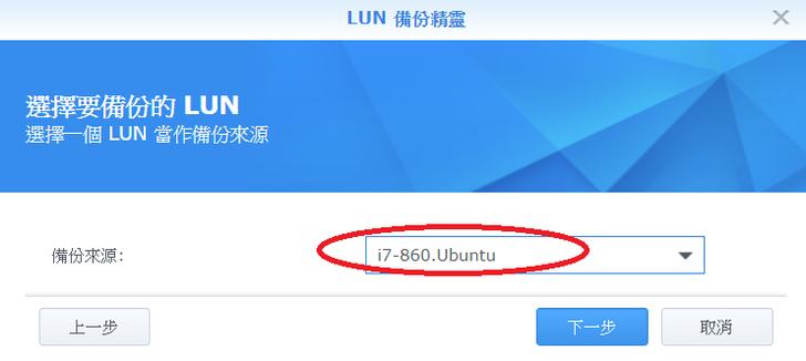 選擇要備份的 iSCSI 磁碟,按下一步。