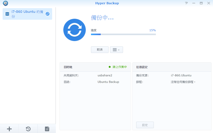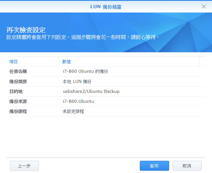 檢查備份設定正確無誤後按套用,備份工作馬上就開始了。