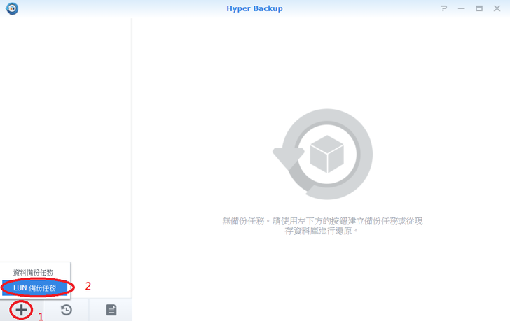 接下來,按一下左下角的「+」並選擇「LUN 備份任務」。