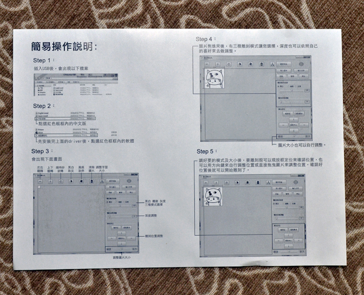 尤其操作相當簡單,完全不需要有繪圖相關的功力,就可輕易上手,非常適合一般喜愛DIY的玩家,或者想替小朋友的餐具、書本、與書包雕刻專屬小孩喜愛的圖案與名子,即使想用來營業專用也非常適合,最後透過這次完整的體驗過程,同樣把這麼特別的東西來分享給各位作個參考!