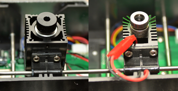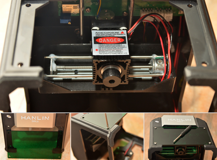▲ 由於雷射光會造成眼睛的病變,所以需要有防護鏡片來過濾光線,利用它附贈的螺絲與螺絲起子,按照綠色透光壓克力板預留的位置鎖上後,就可以減少雷射光的傷害。