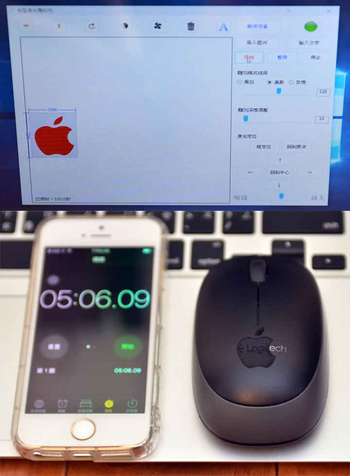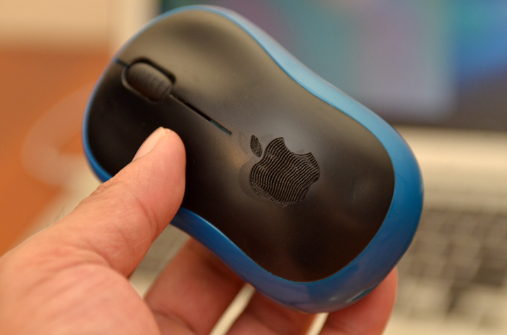 ▲ 而另一個滑鼠使用 LSD3 來測試,雖然我還刻意將LSD3 深度調到25,結果實際的效果卻只在滑鼠表面刻出淡淡的蘋果痕,而且還花了一個小時左右,所以3WLS雕刻速度快18倍是無庸置疑的。