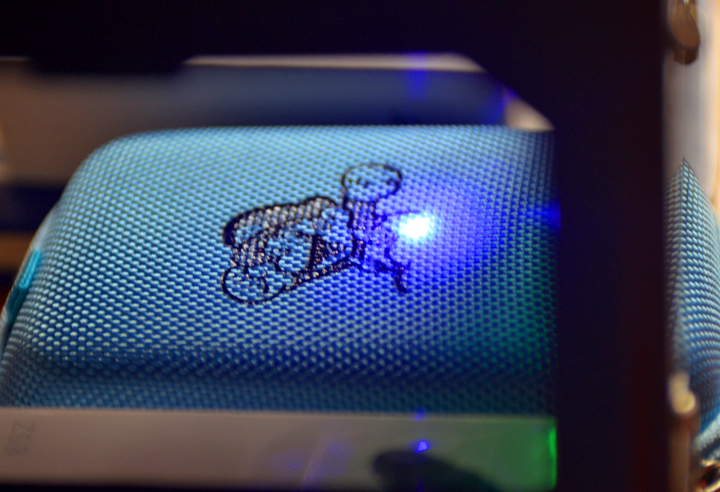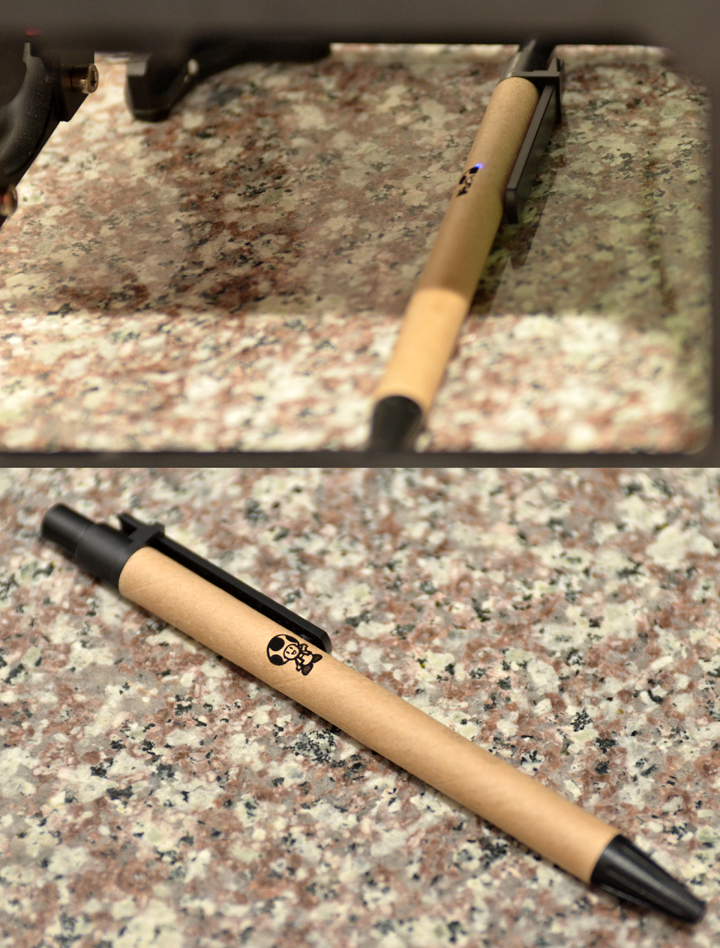 ▲ 由於刮鬍刀是有厚度與特殊形狀,所以需要利用墊枕木原理,將要雕刻的部分盡量呈現平面狀態,調整好雷射頭聚光焦點,就可以開始來進行雕刻。