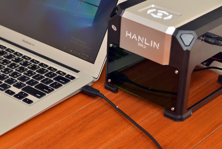 ▲ 採用通用型的 Micro USB 數據線來連接雷雕機與電腦。